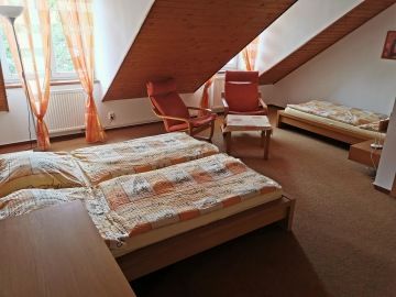 Máme zásobu společenských her a místa na kočárky i kola habaděj. Na zahradě se vyblázní děti i psi. A večer si u krbu nebo ohniště odpočinou dospělí.